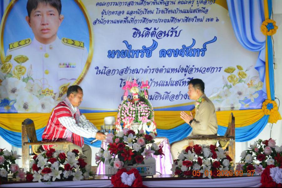 5-1-2569 พิธีต้อนรับ และแสดงความยินดี นายไพรัช ดวงจันทร์ ผู้อำนวยการโรงเรียนบ้านแม่แฮเหนือ