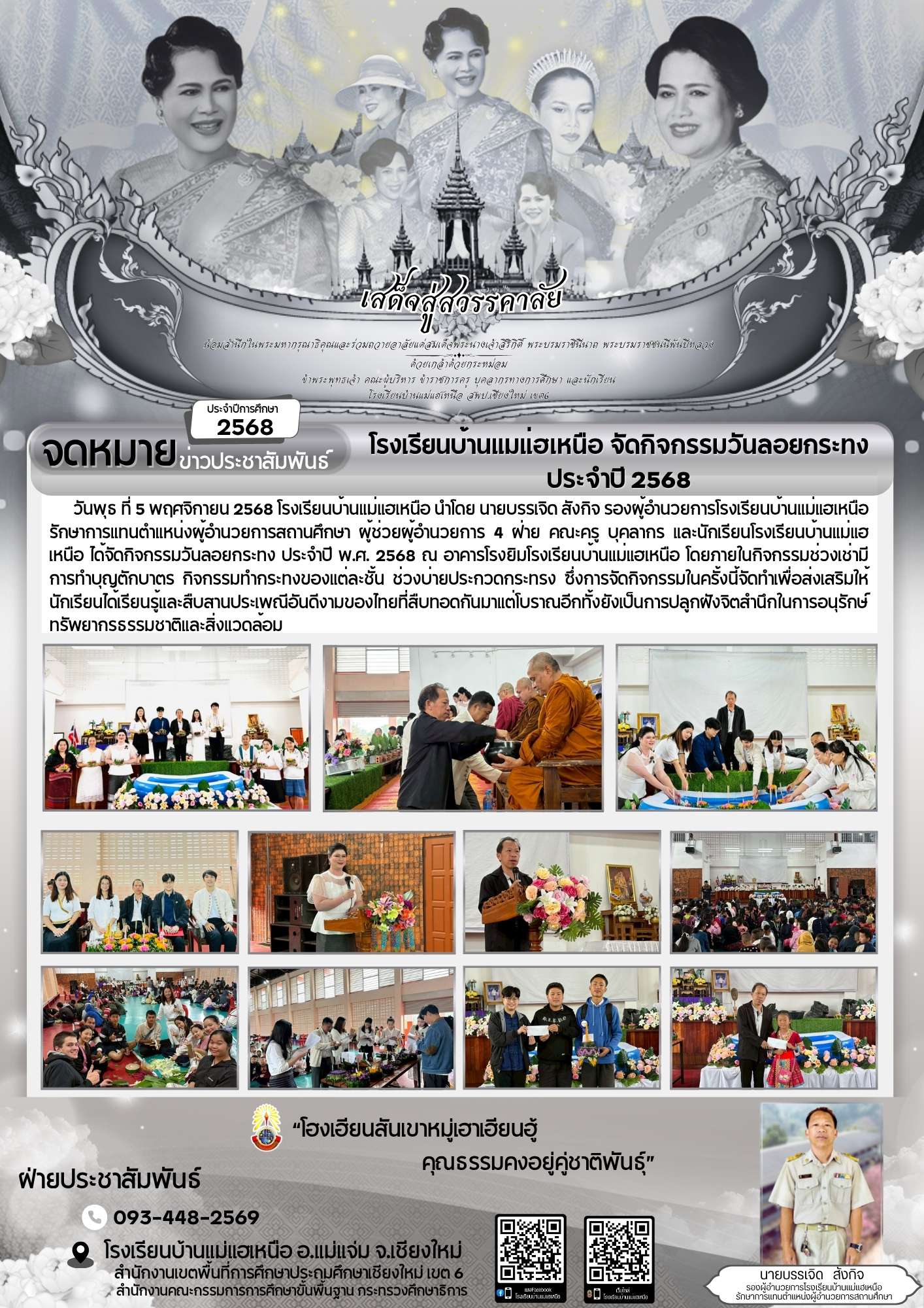เรื่อง โรงเรียนบ้านแมแ่ฮเหนือ จัดกิจกรรมวันลอยกระทง ประจำปี 2568