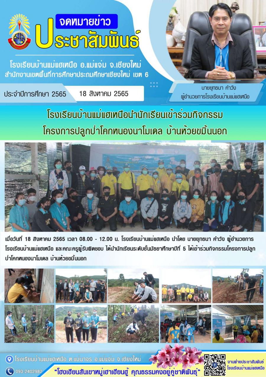 โรงเรียนบ้านแม่แฮเหนือนำนักเรียนเข้าร่วมกิจกรรม โครงการปลูกป่าโคกหนองนาโมเดล บ้านห้วยขมิ้นนอก